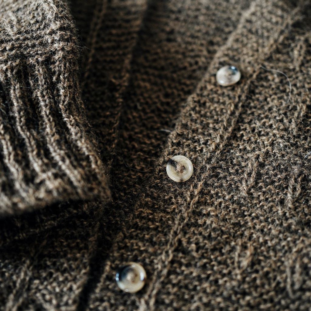 Le cardigan est tricoté en une seule pièce sans couture du bas vers le haut.  Il est tricoté à plat car le point texturé comporte une maille glissé dans le point mousse, ce qui permet de le tricoter très rapidement car il n'y a que très peu de tricot à l'envers.