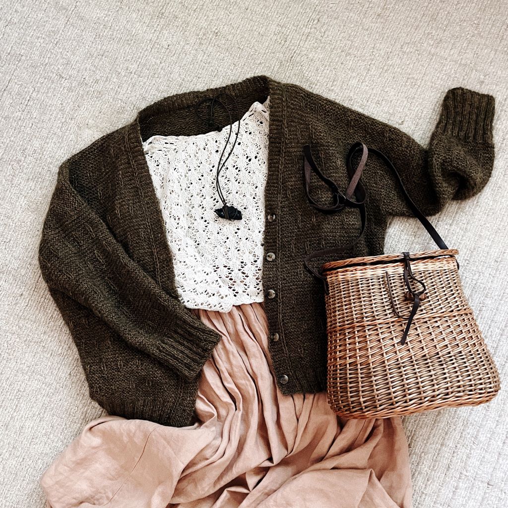 Linden est un cardigan légèrement court, ce qui le rend parfait pour être porté avec n'importe quel type de vêtement à taille haute (bien sûr, vous pouvez ajouter plus de longueur si vous le souhaitez, dans ce cas assurez-vous de vérifier la quantité de fil et d'acheter une taille plus grande pour avoir plus de laine si nécessaire). La coupe est légèrement oversize et boxy avec des manches assez ajustées pour ajouter une touche plus féminine à la silhouette.