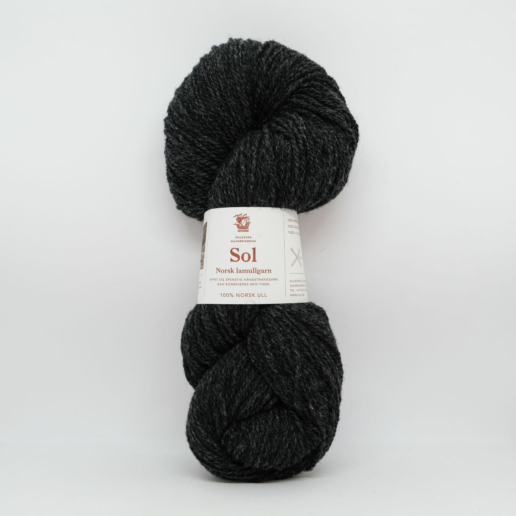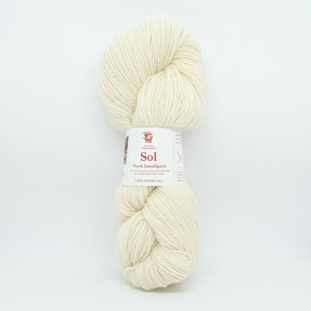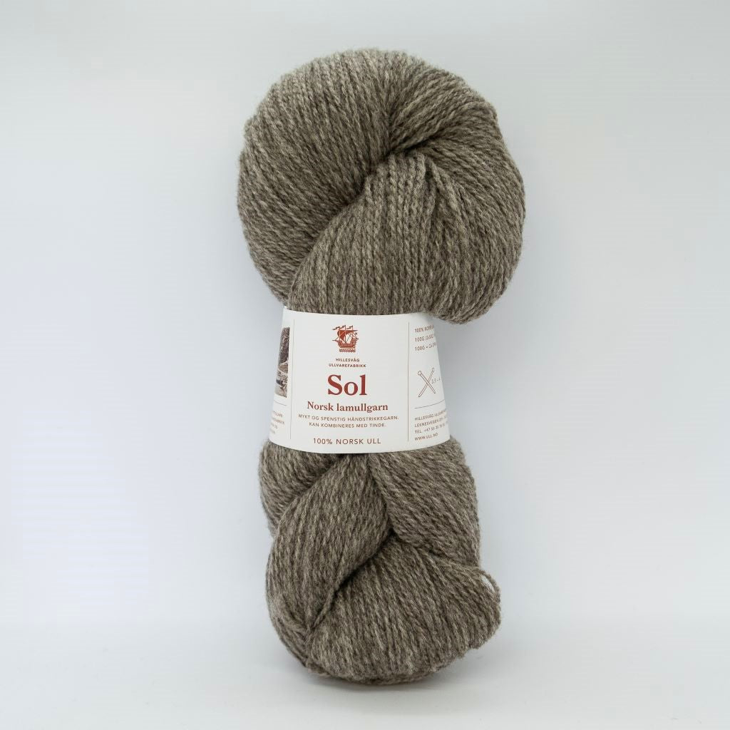 Sol est une laine d'agneau DK (léger), filée à partir des toisons d'agneaux les plus fines (28 microns) d'un mélange de races norvégiennes telles que la Dala et la Ryggja.  Laine des Iles propose le blanc naturel (non-teint) et deux nuances gris de la gamme Sol, qui se combinent parfaitement avec la gamme Tinde de Hillesvåg.  Cette option sera bien utile pour vos jacquards nécessitant du blanc par exemple.  Sol peut bien sûr aussi se tricoter toute seule pour des projets classiques en DK, elle est parfaite pour les tricots texturés.