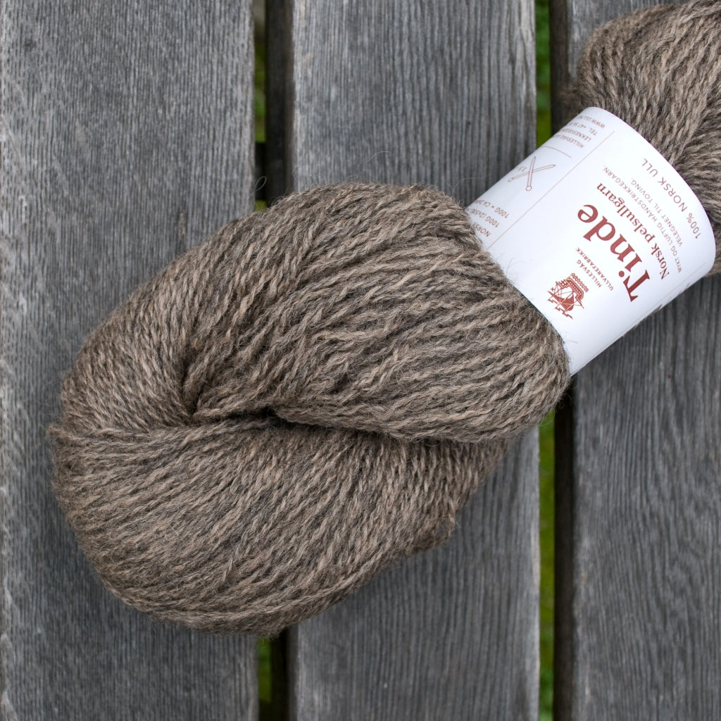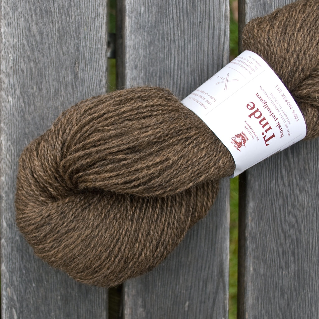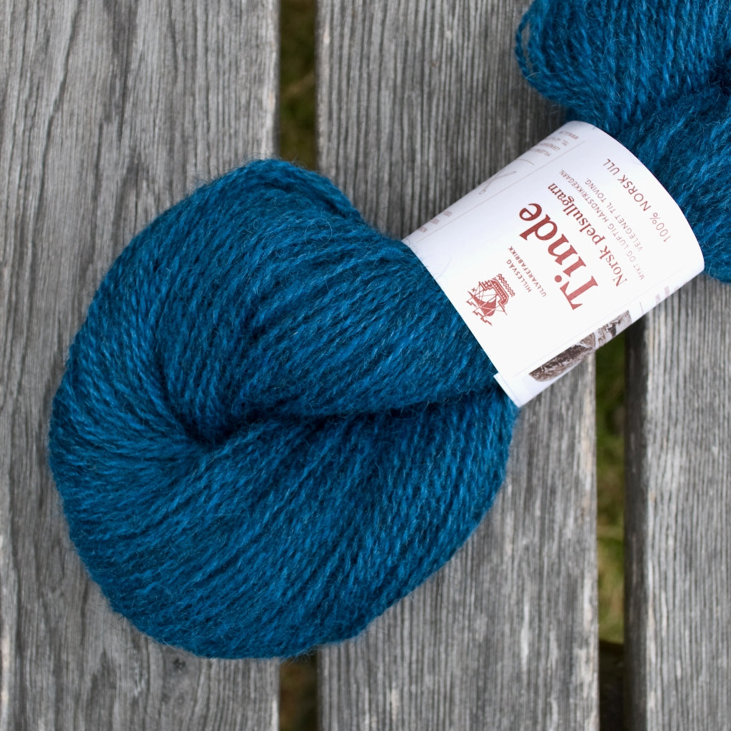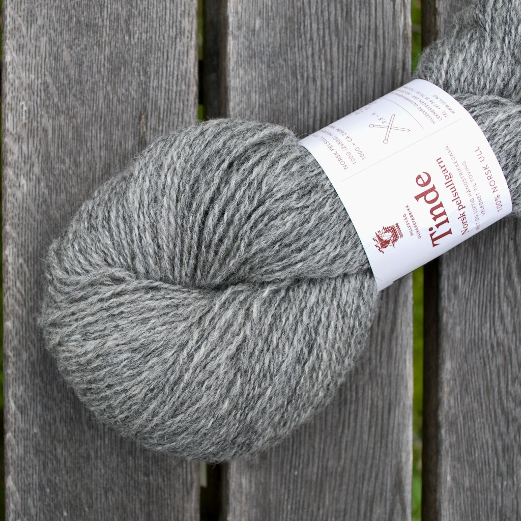 Tinde fait partie de la gamme des laines Norsk Pellsullgarn de Hillesvåg Ullvarefabrikk.  Ces laines sont filées à partir de toisons de la race norvégienne Pelssau. C’est un croisement entre le mouton Gotland (issu de l’île suédoise de Gotland) et de la race historique norvégienne Spælsau. La race Spælsau descend quant à elle des Old Norwegian Gammel Norsk Spælsau – très ancienne race de moutons que les Vikings emmenaient avec eux lors de leurs voyages à travers l’Europe du Nord, et donc l’ancêtre de plusieurs de nos races contemporaines de moutons des îles, dont l’islandais, le férioën et en partie la race Shetland et d’autres races écossaises.