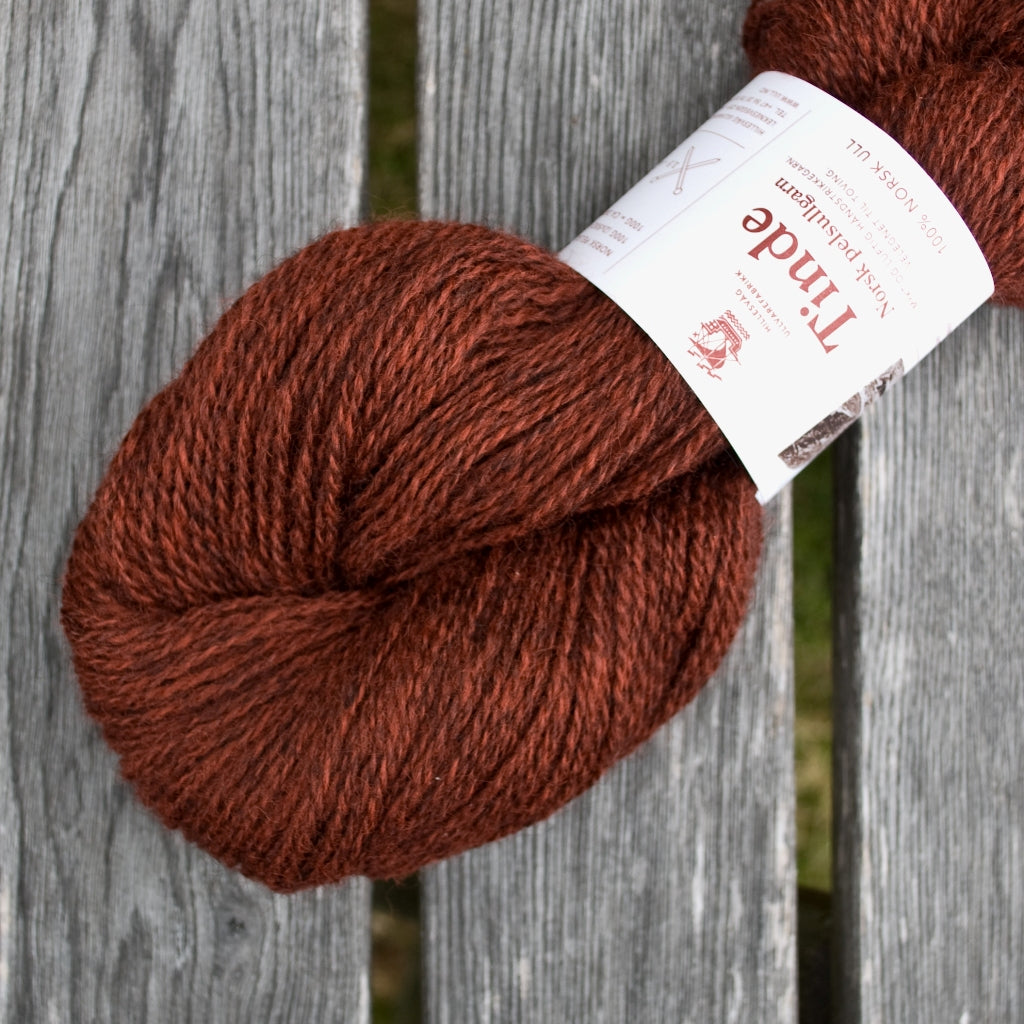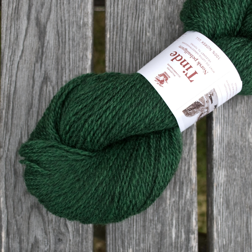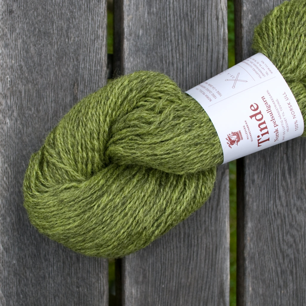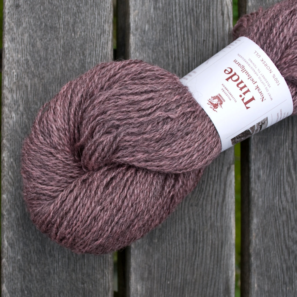 Tinde fait partie de la gamme des laines Norsk Pellsullgarn de Hillesvåg Ullvarefabrikk.  Ces laines sont filées à partir de toisons de la race norvégienne Pelssau. C’est un croisement entre le mouton Gotland (issu de l’île suédoise de Gotland) et de la race historique norvégienne Spælsau. La race Spælsau descend quant à elle des Old Norwegian Gammel Norsk Spælsau – très ancienne race de moutons que les Vikings emmenaient avec eux lors de leurs voyages à travers l’Europe du Nord, et donc l’ancêtre de plusieurs de nos races contemporaines de moutons des îles, dont l’islandais, le férioën et en partie la race Shetland et d’autres races écossaises.