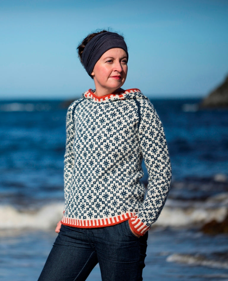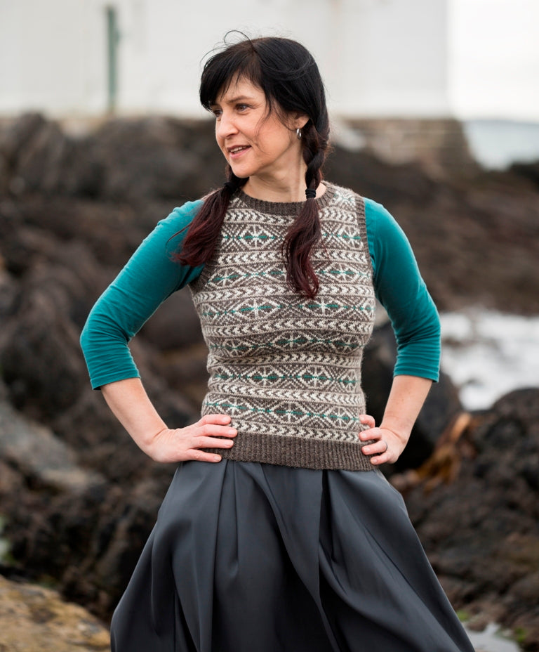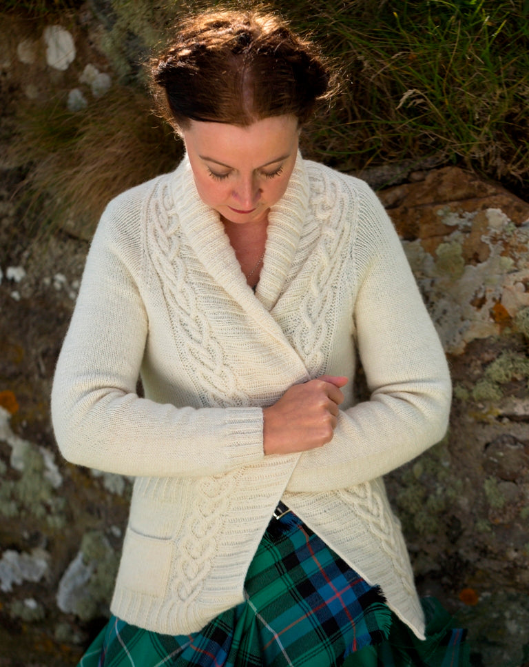 Dans cette collection, Kate s’inspire du paysage de l’île d’Islay pour créer douze nouveaux modèles. Des haps (châles shetlandais) contemporains aux chaussettes de kilt; des capuchons jacquard aux gilets torsadés; d’un pull “yoke” à une couverture à carrés; les modèles sont groupés en quatre “histoires” , dont chacune explore un lieu différent de l’île. Avec ses racines dans l’histoire et la culture spécifique de l’ile, les modeles de Kate évoquent la riche profondeur de l’inspiration offerte par Islay.