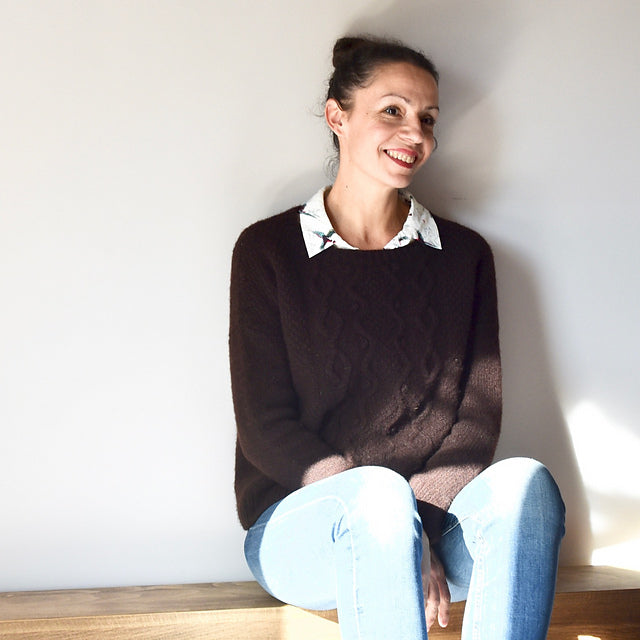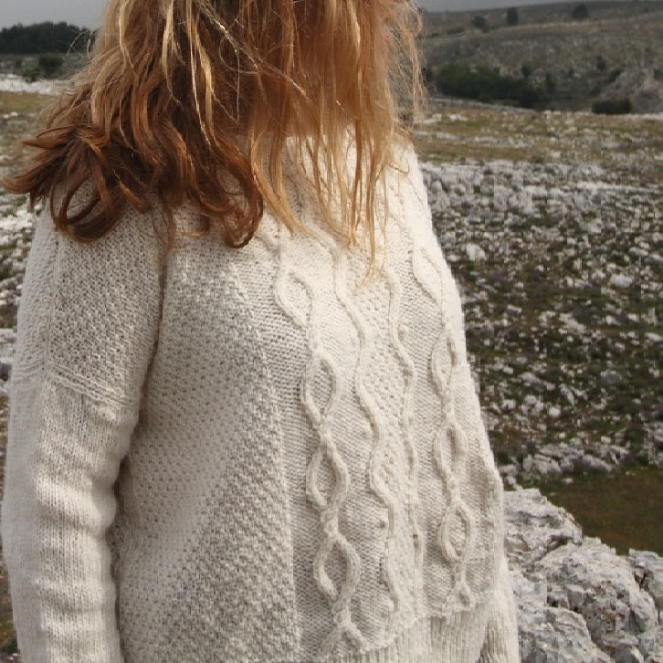 Karersee est un pull “relaxed” tricoté en « bottom up » (du bas vers le haut) dans la superbe laine Snaeldan - une interprétation française des pulls provenant des îles Aran de l'Irlande, en laine des Iles Féroé. Un vrai pull des îles!