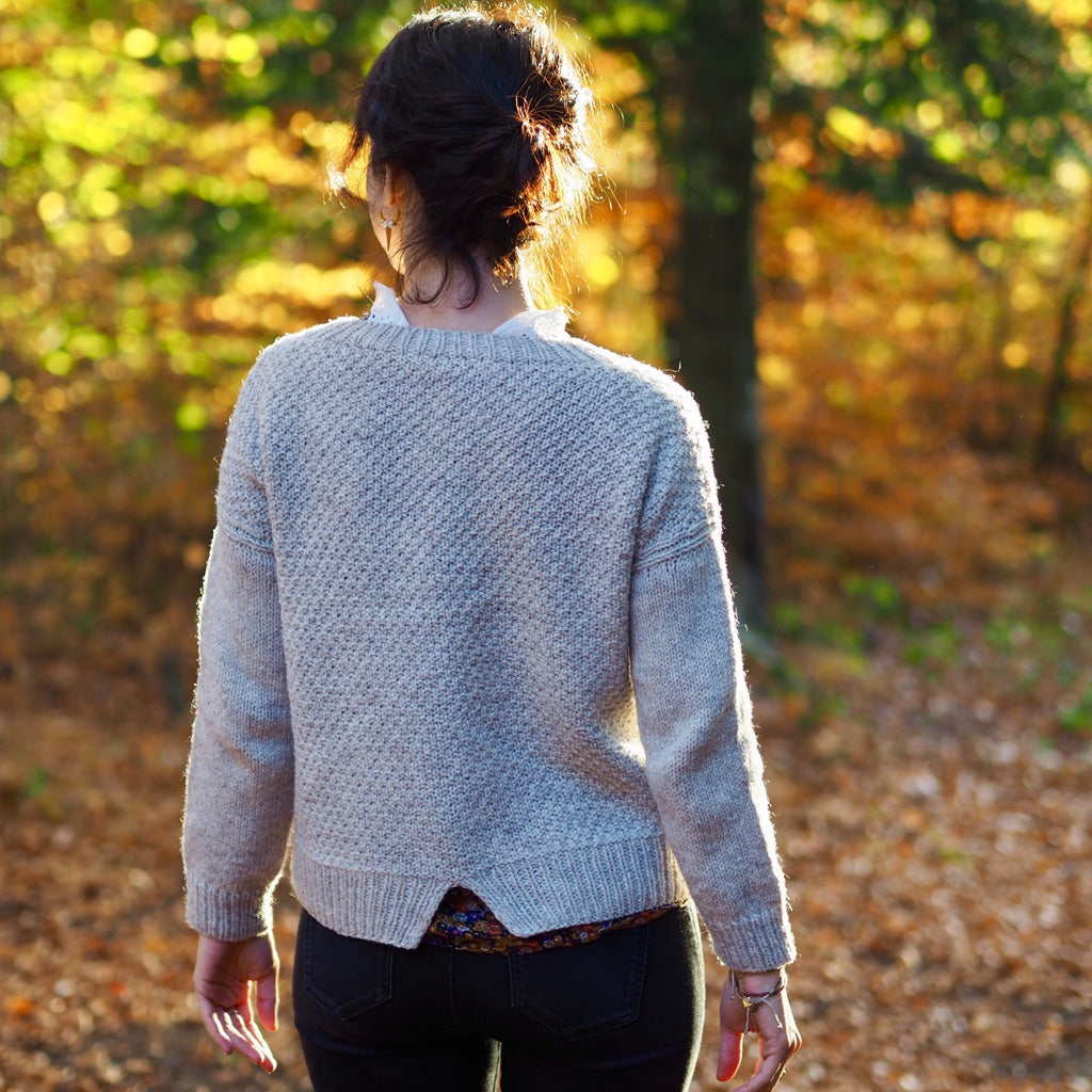 ATTENTION: Vous avez l'option de tricoter ce pull entièrement en point de blé, ou avec le dos en jersey. Vous recevrez donc 2 fichiers, un pour chaque version. Merci de préciser la langue préférée (français ou anglais).