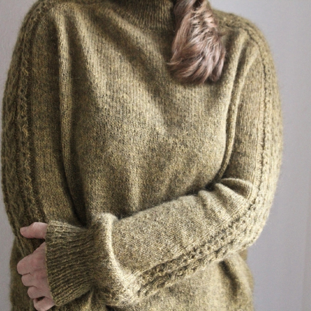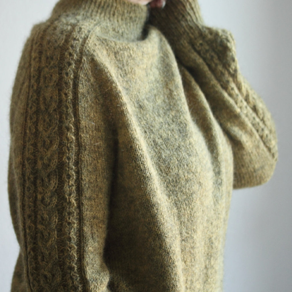 Nook se veut un modèle réconfortant et chaleureux dans lequel on se sent bien durant les longues et froides journées d’hiver aux paysages enneigés. Combinant la simplicité du jersey et l’originalité des torsades le long des manches, ce pull met en valeur la beauté d’un fil authentique et unique.