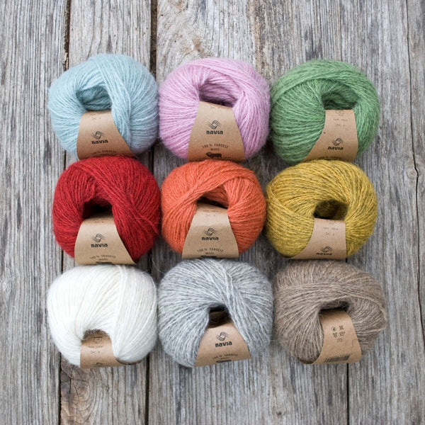 Bien que la gamme Navia comprenne plusieurs types de fils différents, chez Laine des Iles, nous nous intéressons principalement à leurs fils traditionnels filés à partir de laine 100 % féroïenne. On pense que les îles Féroé sont habitées depuis le 6ème siècle, et des preuves montrent que les moutons sont arrivés à la même époque. La laine a donc toujours fait partie intégrante de la vie féroïenne et les îles possèdent un riche héritage en matière de tricot.