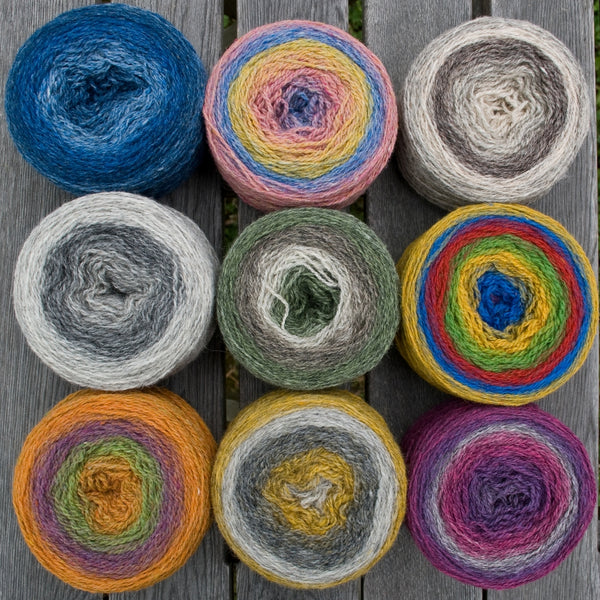 La laine collectée provient essentiellement de la race de moutons Gotland, originaires de l’île de Gotland toute proche, et la plus grande île de Suède. La toison dense et lustrée de ces moutons gris est particulièrement belle, et peut s’étendre dans toutes les gammes de gris, de l’argent à des gris quasi noirs. Les fils colorés de Ullcentrum sont teints tant sur des laines tant blanches que toutes les nuances de gris, ce qui leur donne cette allure chinée unique.