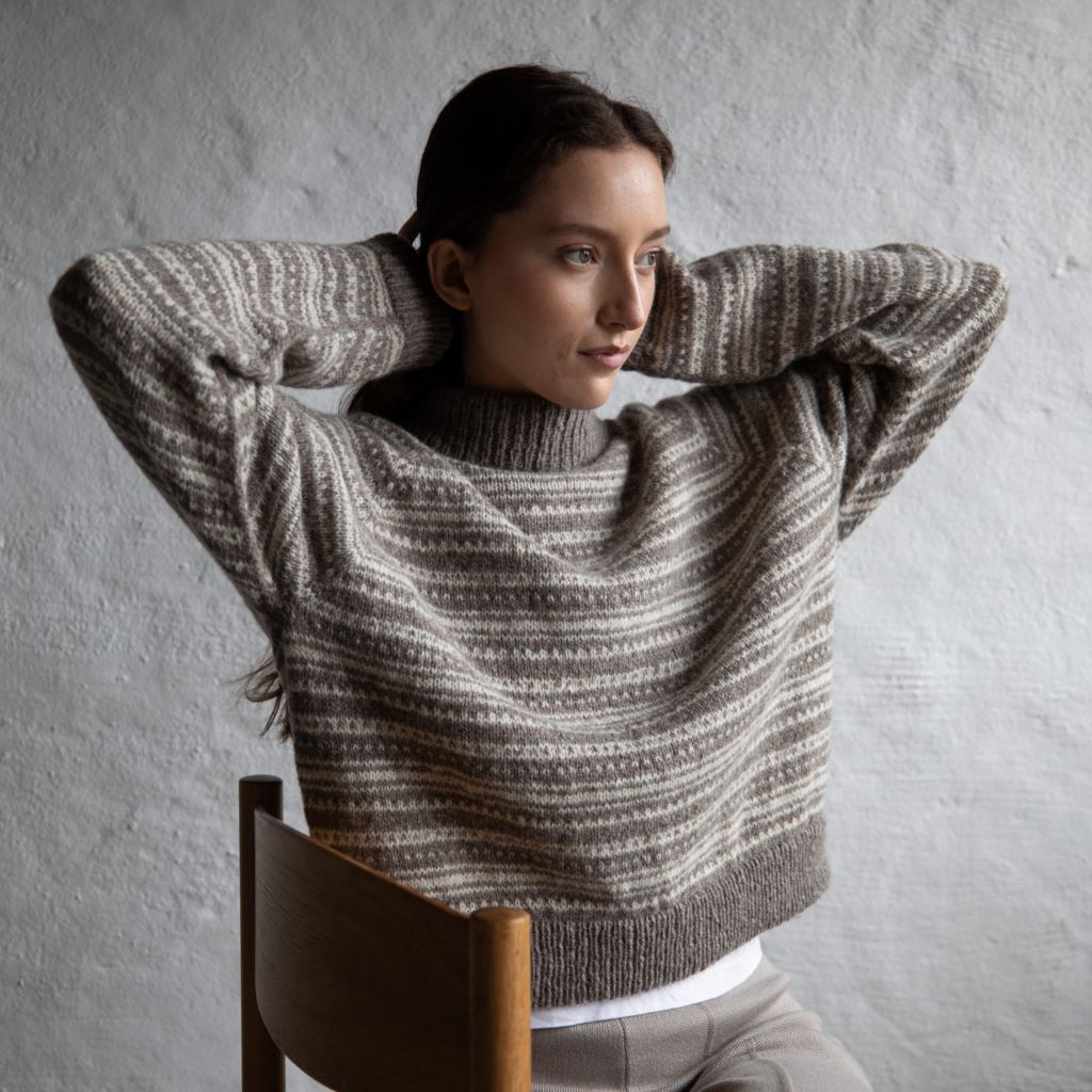 En achetant ce kit, vous économisez 10 % sur le prix d'achat séparé du fil et du patron.  Veuillez noter que nous ne proposons ce patron sous forme de kit, en anglais avec traduction française.  Le patron seul n'est disponible que sur le site de Hillesvåg Ullvarefabrikk en anglais, danois et norvégien.
