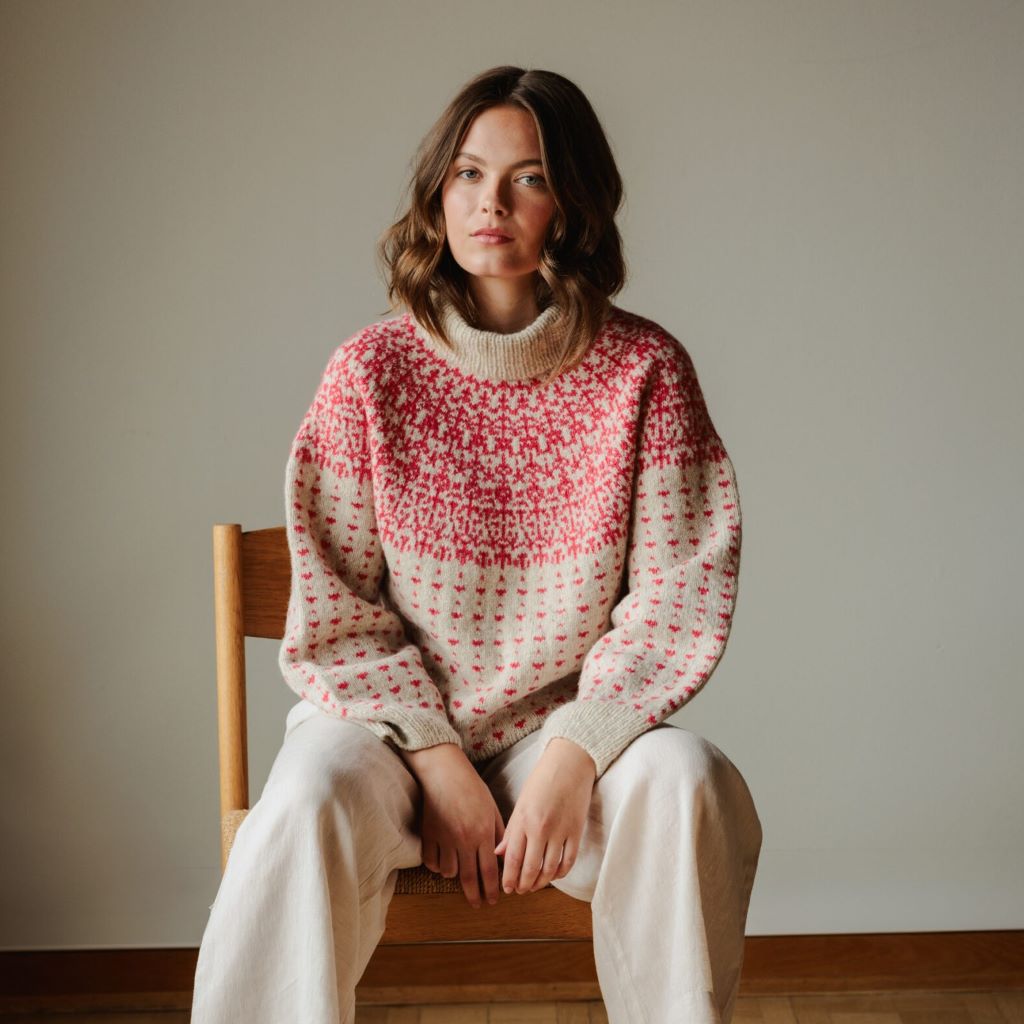 En achetant ce kit, vous économisez 10 % sur le prix d'achat séparé du fil et du patron. Veuillez noter que nous ne proposons ce patron sous forme de kit, en anglais avec traduction française. Le patron seul n'est disponible que sur le site de Hillesvåg Ullvarefabrikk en anglais, danois et norvégien.